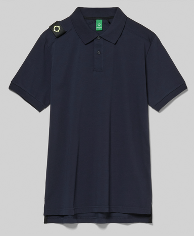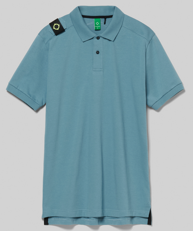 MA.Strum Contrast colour double tipping on collar and cuffs Embroidered chest logo Pique cotton Two button closure #19136