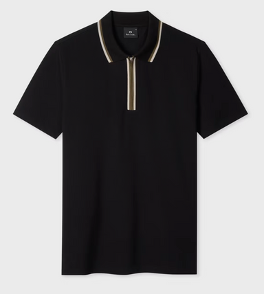 PS Paul Smith ShortSleeved Polo Shirt Zip Neck Logo Tab on the Seam Organic Cotton #1377